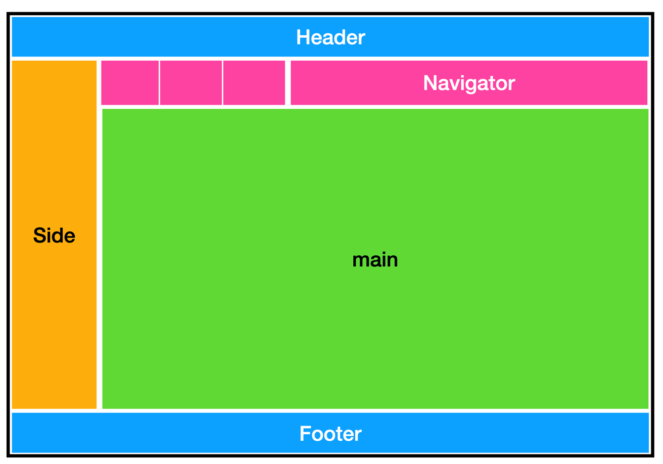 5대 구성 요소: 메인 바디, 헤더, 내비게이터, 사이드바, 푸터