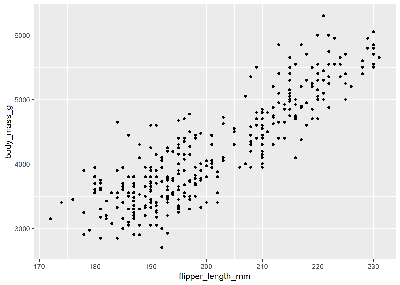mapping = aes(x = flipper_length_mm, y = body_mass_g)