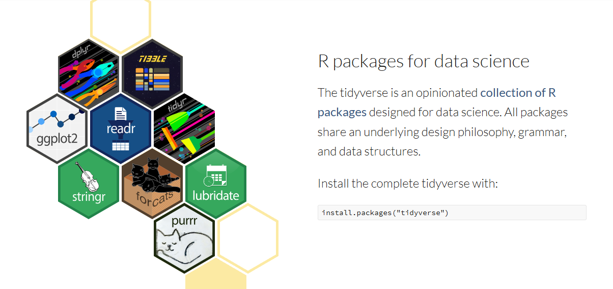 데이터사이언스의 다양한 과업을 수행하기 위해 Base R의 함수들이 사용되고 있지만, 보통은 이와 함께 다양한 패키지(package)들이 널리 사용되고 있다. 따라서 본 실습에서는 우선 패키지의 사용과 관련된 부분을 다루고 뒤를 이어 데이터사이언스의 네 과제가 어떻게 이루어지는지 대략적으로 다룰 것이다.