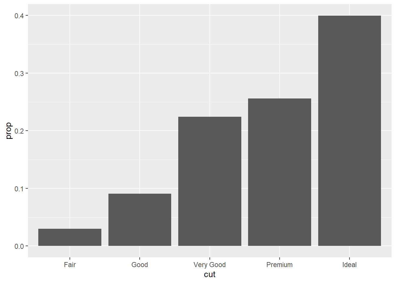 ggplot(diamonds, aes(x = cut, y = after_stat(prop), group = 1)) +