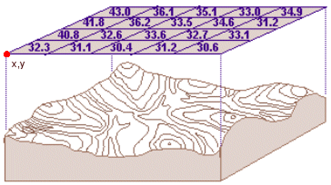 이에 반해 래스터 데이터는 세상을 동일한 크기의 수 많은 그리드 셀(grid cell)로 구성되어 있다고 보며, 개별 그리드 셀에 속성이 저장되어 있는 데이터를 의미한다. 가장 쉬운 예가 인공위성 영상이다. 인공위성 영상의 특정한 공간해상도를 가진 픽셀로 나뉘어져 있고, 개별 픽셀에 특정한 값(특정한 밴드의 반사값)이 들어가 있다. 따라서 래스터 데이터는 벡터 데이터처럼 형상 데이터와 속성 데이터가 분리되어 있는 것이 아니라 일체형이다. 특수한 경우가 아니라면 하나의 래스터 파일에는 하나의 속성만이 들어가 있다. 이에 반해 벡터 데이터의 속성 파일에는 수많은 변수가 포함될 수 있다.