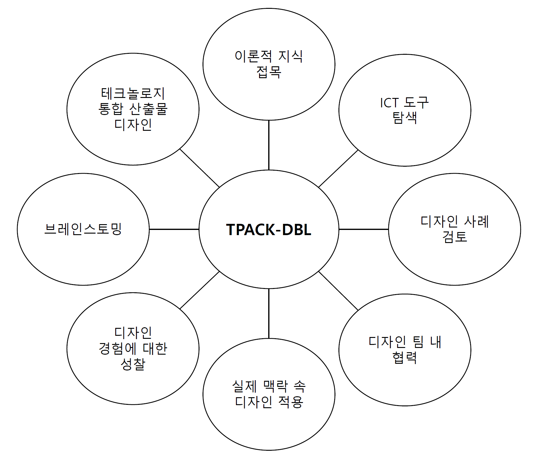 | 테크놀로지 통합 산출물 디자인 | 수업안, 학습 자료, 디지털 콘텐츠 등과 같이 TPACK 기반의 구체적 교육 산출물을 설계하는 과정 |