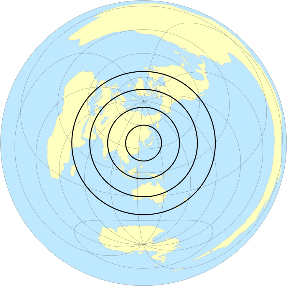 PROJ.4 문자열: +proj=robin +lon_0=150 +x_0=0 +y_0=0 +datum=WGS84 +units=m +no_defs