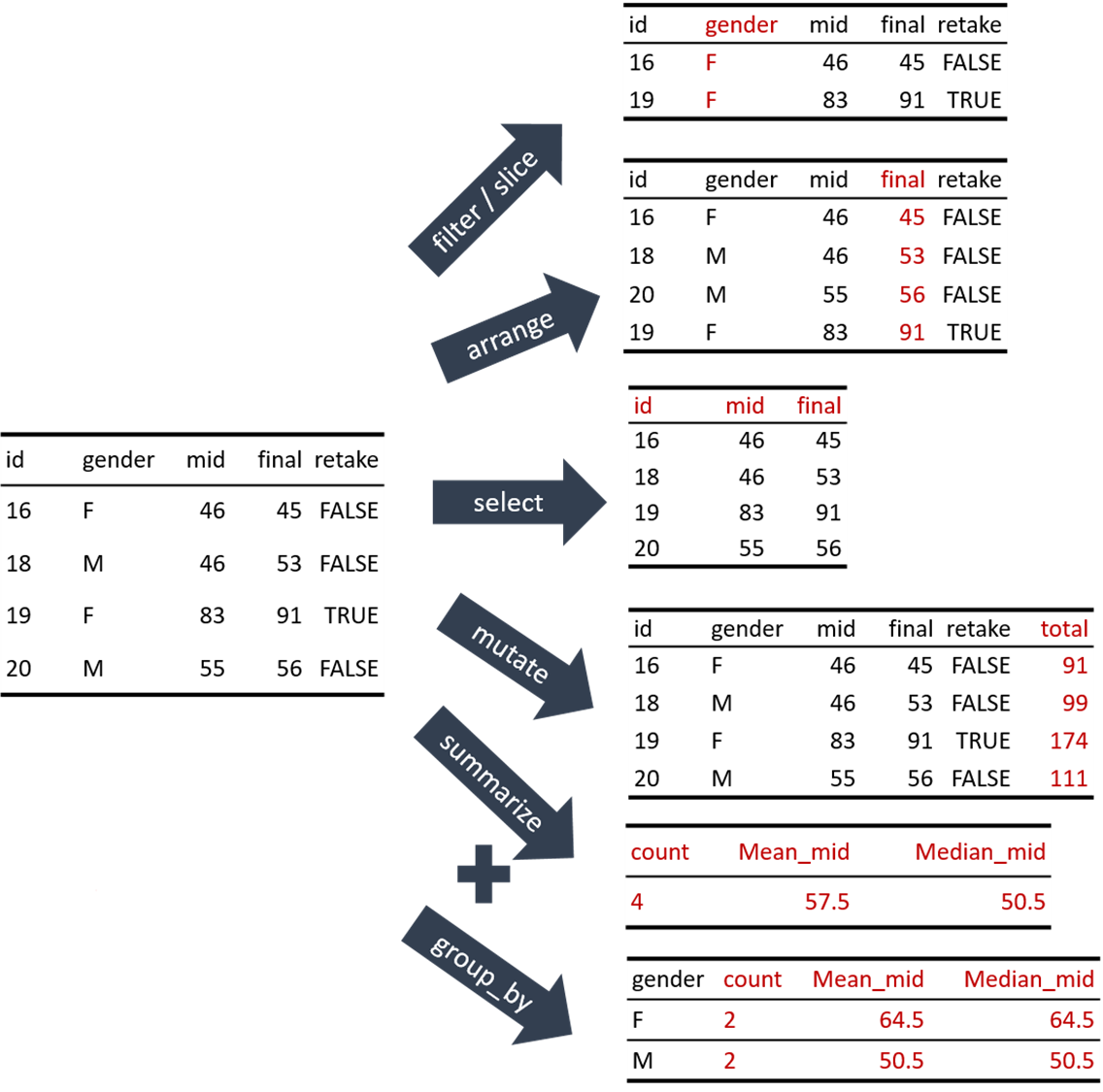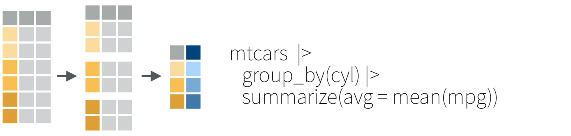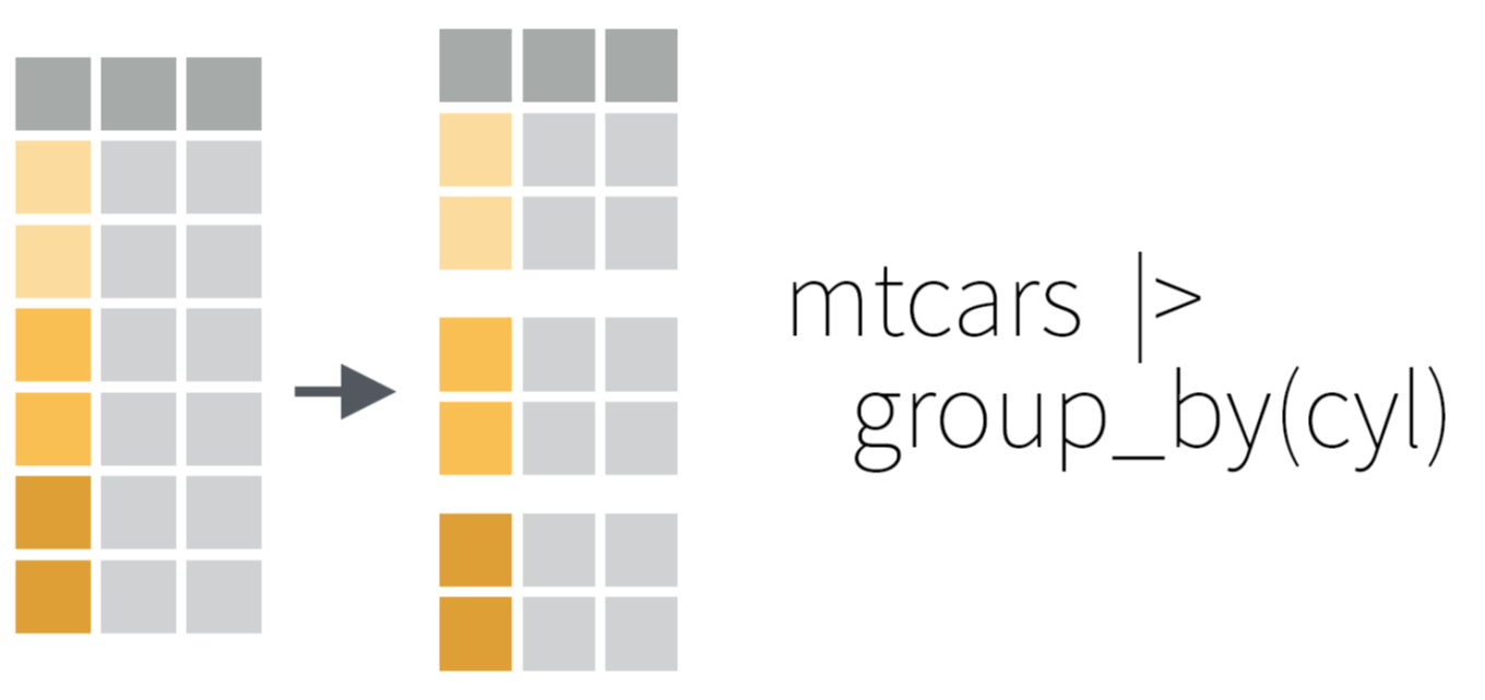 group_by(): 변수(들)에 의거해 전체 행(들)을 그룹으로 분할