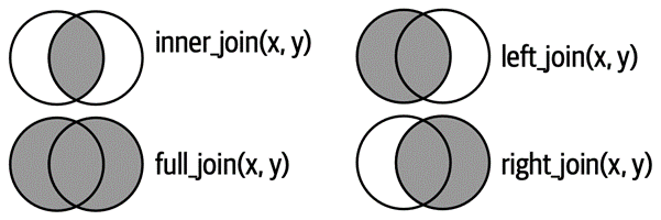 right_join(): 두 번째 테이블은 그대로 둔 상태에서 첫 번째 테이블을 결합함으로써 첫 번째 테이블의 열을 가져옴
