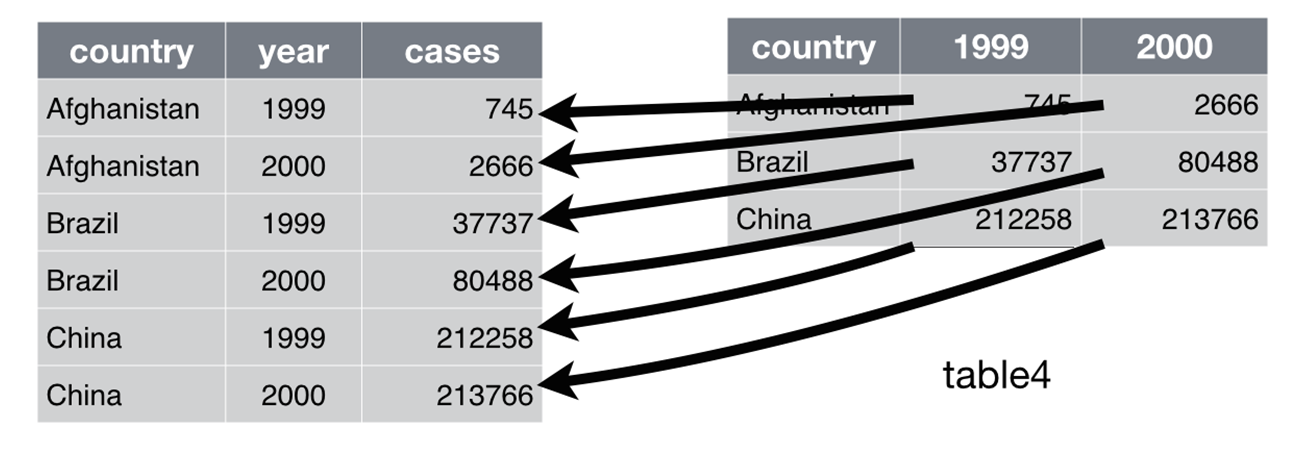 bind_row(): 컬럼이 동일한 두 테이블을 상하로 연결bind_col(): 행이 동일한 두 테이블을 좌우로 연결gapminder_merge_row <- bind_rows(