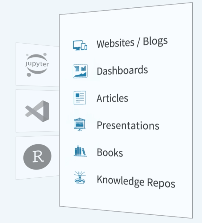 다양한 형식의 저작물(노트, 연구 논문, 프레젠테이션, 대시보드, 웹사이트, 블로그, 서적 등)을 다양한 디지털 포맷(HTML, PDF, MS Word, ePub 등)으로 출판할 수 있게 해주는 도구