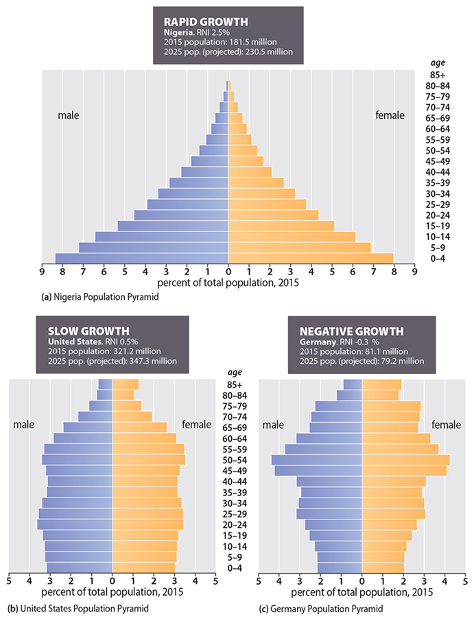 인구 피라미드의 유형과 인구변천모델