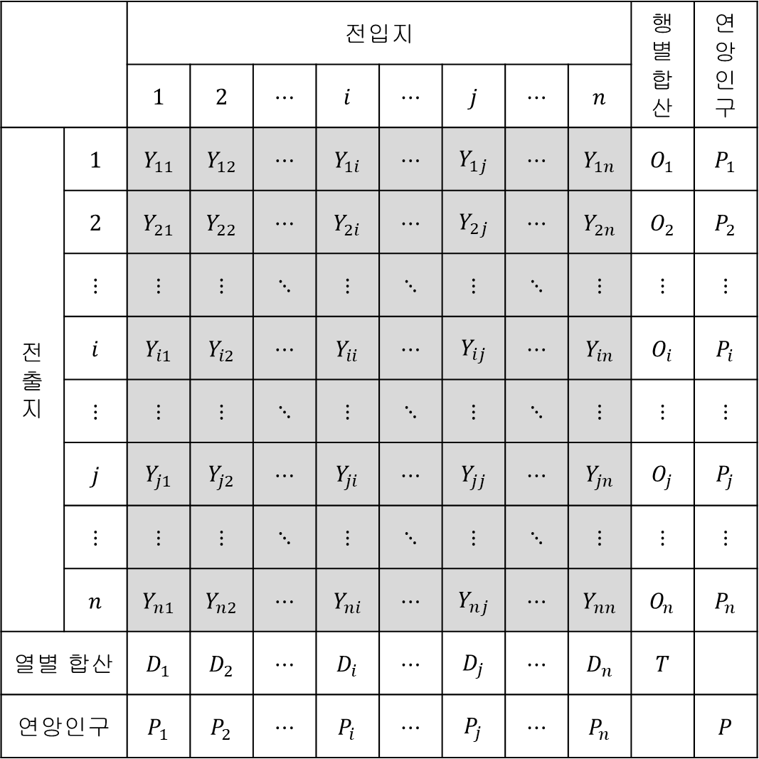 순이동(net migration, \(NM_i\)): 전입 - 전출 -> \(NM_i=IM_i-OM_i\)