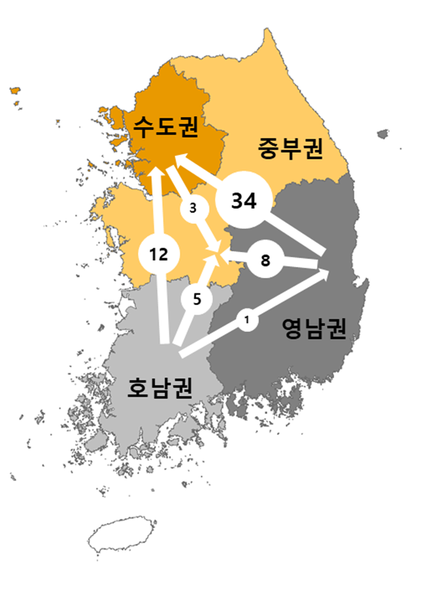 음수: 전출 초과 혹은 ‘순전출(net out-migration)’